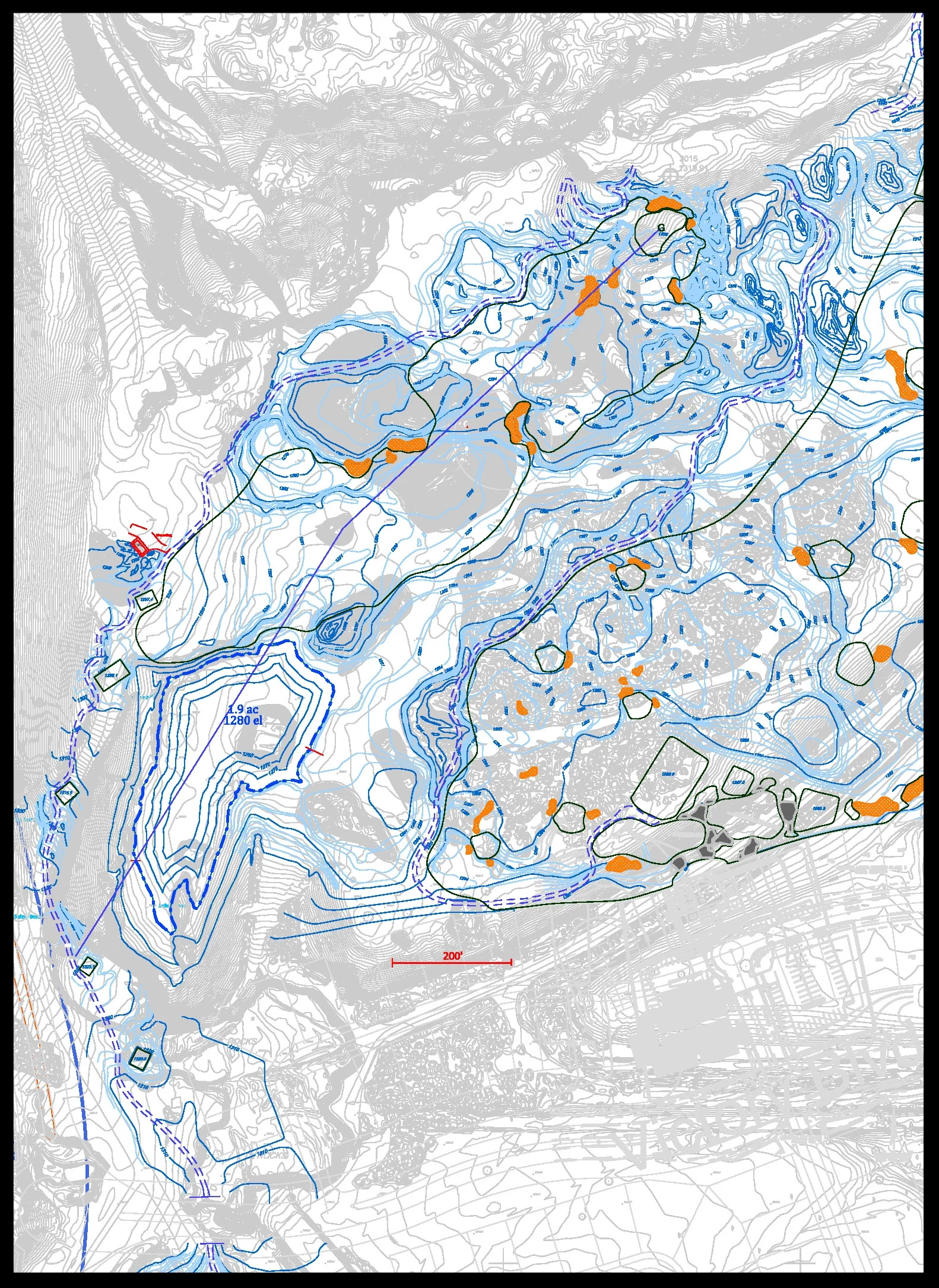 Early on it became important for the 18th hole to be flexible in its final design. It was to be the last of the first five holes designed and built so that it could be adjusted as necessary. The possibility existed that 200,000 cubic yards of material would have to be used from other development areas due to timing issues or lack of readiness in other areas. This first rough design took into account this volume of material and used the similar tall stockpiles that initially existed on this hole as the key feature or design element. It also allowed us to hide the tremendous rock face near the second landing area until the golfer walked through two large features, something we valued from an experience perspective.